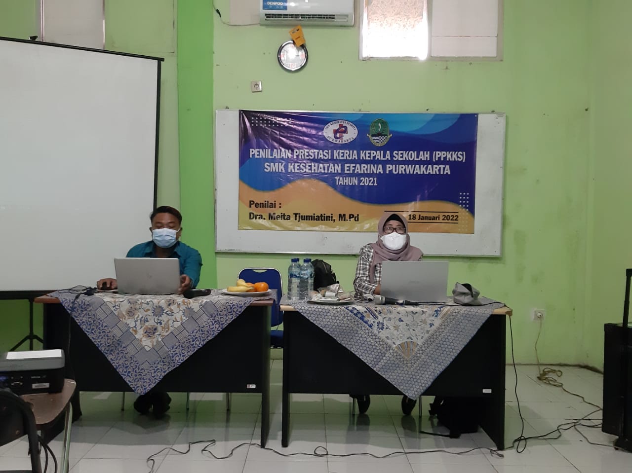 Kepala Sekolah SMK Kesehatan Efarina Bapak Herwed Nelson Doloksaribu, S.Pd., M.Kes telah melakukan Penilaian Prestasi Kerja Kepala Sekolah (PPKKS) Tahun 2021 pada tanggal 18 Januari 2022 dengan Penilai Ibu Dra. Meita Tjumiatini, M.Pd.