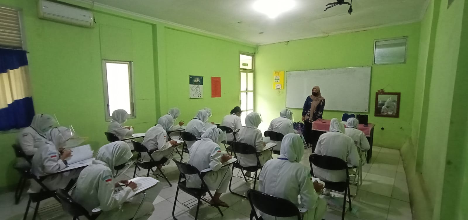 Siswa kelas XII yang mengikuti Uji Sertifikasi Kompetensi (USK) berjumlah 17 orang dengan skema keahlian Keperawatan. Pada hari Senin, 21 Februari 2022 pelaksanaan USK dilaksanakan mulai dari pukul 08.00-16.30. USK diawasi oleh seorang asesor yang ditugaskan oleh LSP Bhakti Kencana Subang yaitu bapak Casmo S.Kep., Ners., M.M dan ibu Lisna Lediawati, S.Kep. Pelaksanaan USK berlangsung dengan tertib dan lancar dimana semua asesi, asesor dan tim sekolah melaksanakan protocol kesehatan dengan selalu memakai masker, mencuci tangan dan menjaga jarak. Dan sebagai hasil akhir seluruh siswa kelas XII diberikan Rekomendasi oleh asesor yaitu KOMPETEN.